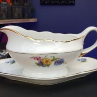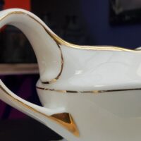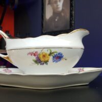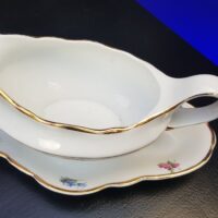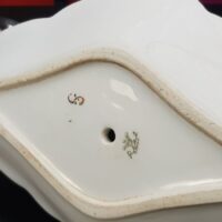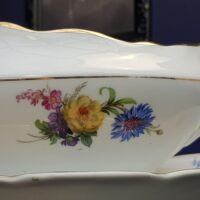 Molheira em porcelana branca da Manufatura Real São Paulo, autêntica, com detalhes filetados a ouro e decoração aplicada com flores policromadas.