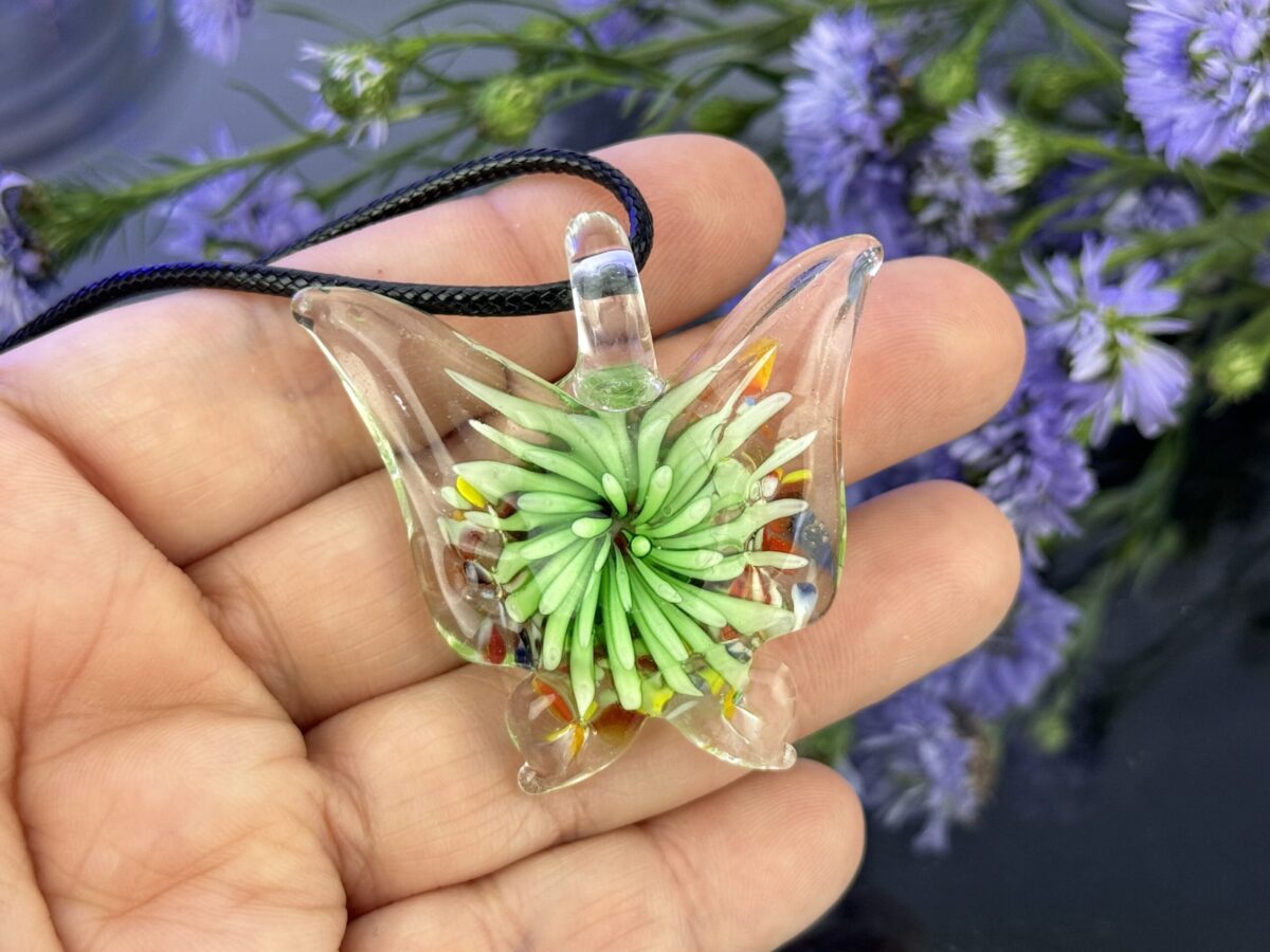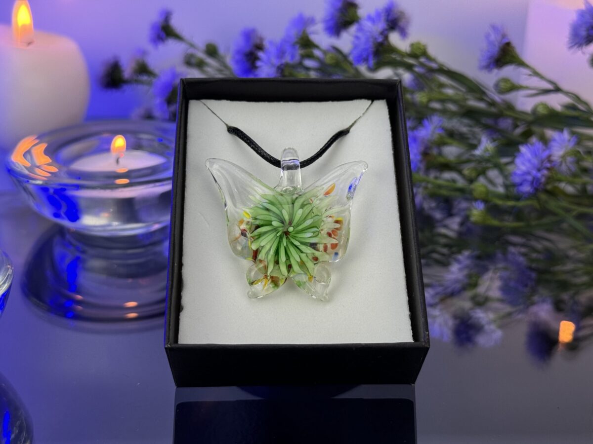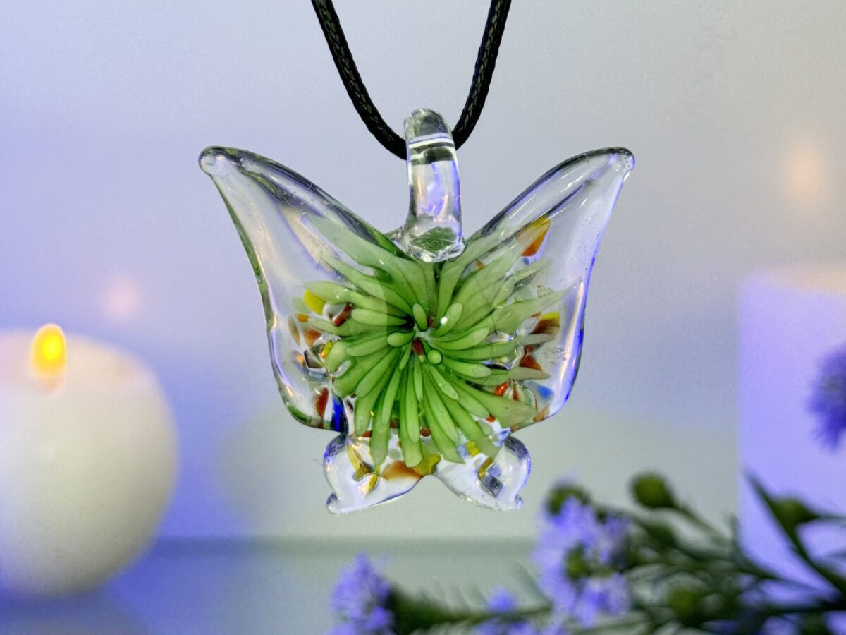 Murano Pendant The Essence of Fire Green Butterfly