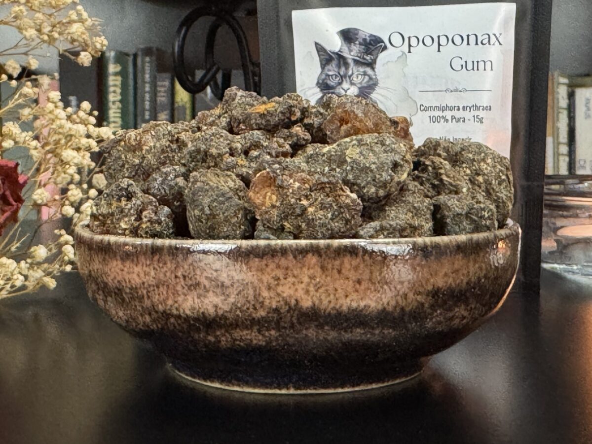 Opoponax (Estoraque-Doce) é uma resina aromática ancestral, extraída em lágrimas do gênero Commiphora nas regiões do Chifre da África. Sua goma âmbar, de perfume doce, meloso e levemente baunilhado, carrega o arquétipo da reconciliação interior e da atração delicada; uma ponte perfumada entre o corpo e as intenções do coração. Excelente como fixador em rituais olfativos, em unguentos de atração e em defumações destinadas à harmonização de lares e altares.