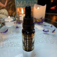 Óleo egípcio de unção que proporciona habilidades de concentração, determinação e poder ao praticante em rituais. Produto consagrado em ritual, pronto para uso.