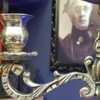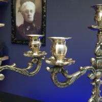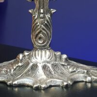 Instrumentos Mágicos – Candelabros ritualísticos – Castiçais de Prata – Castiçais década 60- Par de Castiçais Góticos Antigos