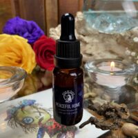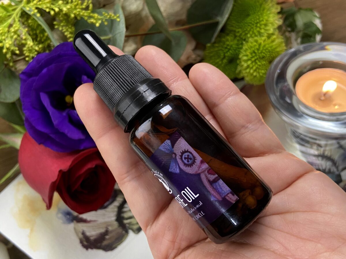 Os óleos Além de Salém são legítimos óleos mágicos, elaborados a partir de ingredientes 100% naturais conforme tradições antigas. Cada receita é respeitada em seu tempo de repouso e, depois, enriquecida com ervas, óleos essenciais e resinas que potencializam suas propriedades. Todo o processo é conduzido ritualisticamente, tornando cada vidro uma matriz potente.