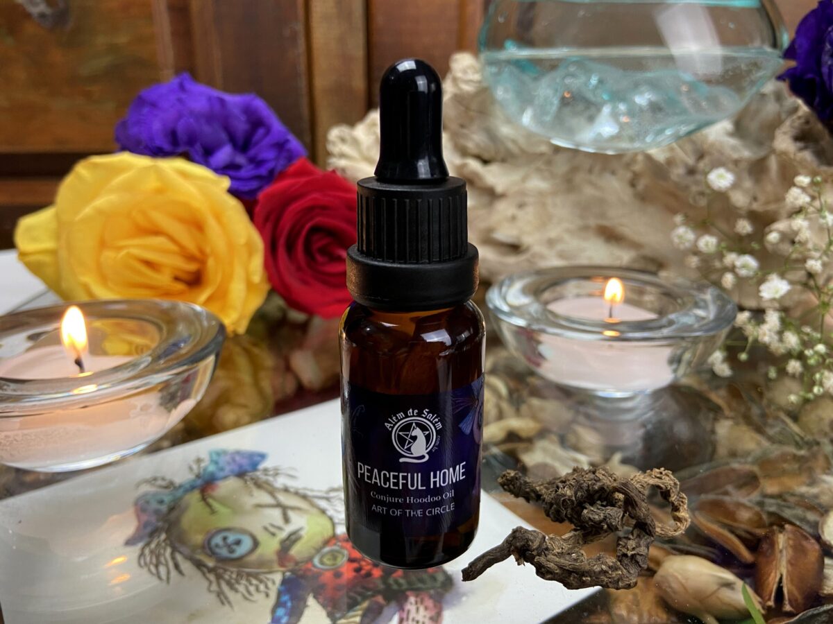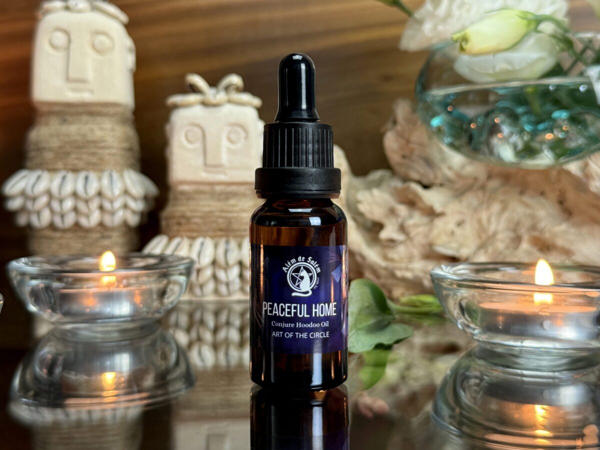 O óleo de hoodoo Peaceful Home é usado para trazer paz, amor e harmonia a um lar e família. Eficaz barreira de proteção se usado para desenhar sigilos em portas e janelas. Mantém afastado conflitos, agitação, brigas e toda influência negativa de fora para dentro. Usado também em objetos, velas, rituais e feitiços diversos.
