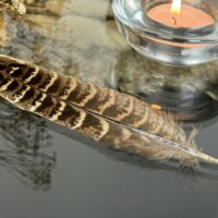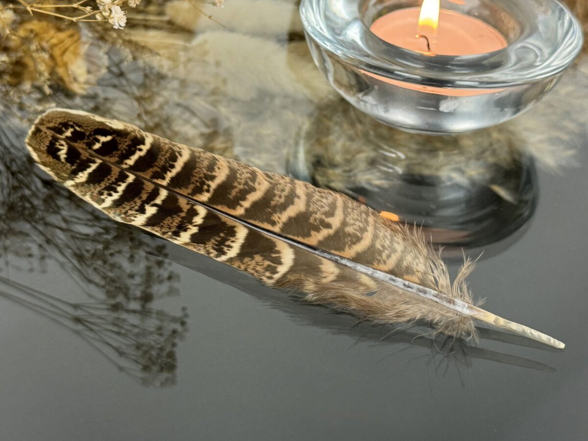 Em Além de Salém, cada pena é valorizada por sua singularidade, destacando a espécie e o propósito a que se destina, para além da beleza, ressaltando sua autenticidade e essência. As penas, diretas expressões da natureza, trazem características únicas de cor e desenho, reafirmando o valor e a verdade de cada item. Assim, é importante notar que as penas de nosso acervo podem variar em tamanho, padrão e tonalidade, ecoando a diversidade e o encanto natural inerentes a cada uma delas.