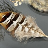 Em Além de Salém, cada pena é valorizada por sua singularidade, destacando a espécie e o propósito a que se destina, para além da beleza, ressaltando sua autenticidade e essência. As penas, diretas expressões da natureza, trazem características únicas de cor e desenho, reafirmando o valor e a verdade de cada item. Assim, é importante notar que as penas de nosso acervo podem variar em tamanho, padrão e tonalidade, ecoando a diversidade e o encanto natural inerentes a cada uma delas.