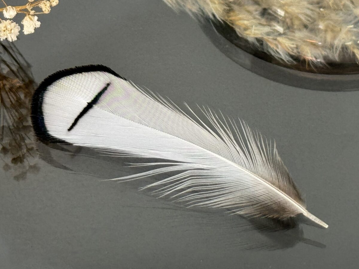 Em Além de Salém, cada pena é valorizada por sua singularidade, destacando a espécie e o propósito a que se destina, para além da beleza, ressaltando sua autenticidade e essência. As penas, diretas expressões da natureza, trazem características únicas de cor e desenho, reafirmando o valor e a verdade de cada item. Assim, é importante notar que as penas de nosso acervo podem variar em tamanho, padrão e tonalidade, ecoando a diversidade e o encanto natural inerentes a cada uma delas.