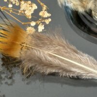 Em Além de Salém, cada pena é valorizada por sua singularidade, destacando a espécie e o propósito a que se destina, para além da beleza, ressaltando sua autenticidade e essência. As penas, diretas expressões da natureza, trazem características únicas de cor e desenho, reafirmando o valor e a verdade de cada item. Assim, é importante notar que as penas de nosso acervo podem variar em tamanho, padrão e tonalidade, ecoando a diversidade e o encanto natural inerentes a cada uma delas.