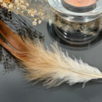 Em Além de Salém, cada pena é valorizada por sua singularidade, destacando a espécie e o propósito a que se destina, para além da beleza, ressaltando sua autenticidade e essência. As penas, diretas expressões da natureza, trazem características únicas de cor e desenho, reafirmando o valor e a verdade de cada item. Assim, é importante notar que as penas de nosso acervo podem variar em tamanho, padrão e tonalidade, ecoando a diversidade e o encanto natural inerentes a cada uma delas.