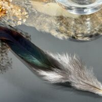 Em Além de Salém, cada pena é valorizada por sua singularidade, destacando a espécie e o propósito a que se destina, para além da beleza, ressaltando sua autenticidade e essência. As penas, diretas expressões da natureza, trazem características únicas de cor e desenho, reafirmando o valor e a verdade de cada item. Assim, é importante notar que as penas de nosso acervo podem variar em tamanho, padrão e tonalidade, ecoando a diversidade e o encanto natural inerentes a cada uma delas.