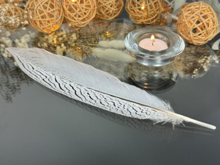 - Branco ou pérola são correspondências de cuidados. Sendo assim, significam anjos, proteção, amor e esperança. As penas brancas ou peroladas também nos preenchem com a sabedoria da lua e instilam uma sensação de paz e pureza.