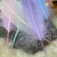 Quando utilizamos uma pena colorida como mensageira de um propósito, queimamos e assopramos suas cinzas na natureza. Utilize todo seu poder de metalização e visualização da realização do seu desejo com fé e envie essa mensagem ao Universo.