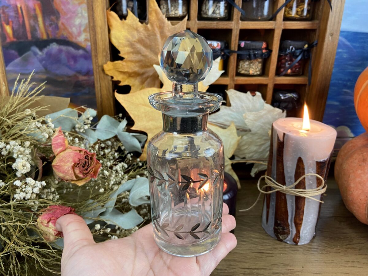 Para quem busca charme, personalidade e estilo nas suas praticas do dia-a-dia, este frasco é perfeito! Pode ser utilizado para armazenar óleos conjure, poções, perfumes e o que mais desejar. Seu estilo clássico presente nas penteadeiras das casas das vovós, deixa o item ainda mais atraente.