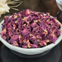 Pétalas naturalmente perfumadas de Mini-rosas cor púrpura para banhos, poções, sachês, feitiços e rituais de amor.