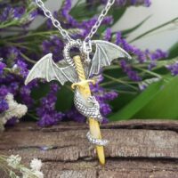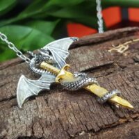 Game of Thrones – Targaryen Game of Thrones – Colar dragão com espada – Dragão que acende no escuro – Pingente e Corrente GOT Dragão com Espada