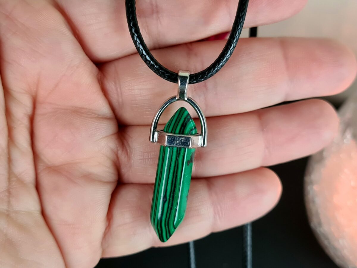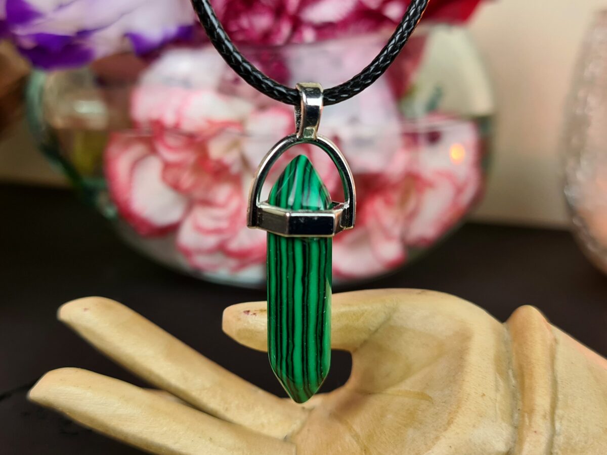 A Malaquita fortalecedora equilibra o Chakra do Coração e o Chakra da Garganta. Esta pedra de transformação ajuda a revelar e curar a dor emocional, absorvendo a dor em si mesma. É benéfica para trazer facilidade em tempos de mudança e fornece a visão necessária para o crescimento pessoal.