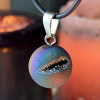 Geodo Marroquino com nuances cintilantes – Pingente Geodo Rainbow Aura – Geod Rainbow – Geodo Titanium