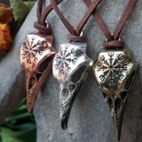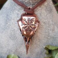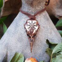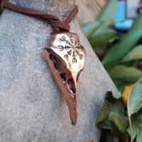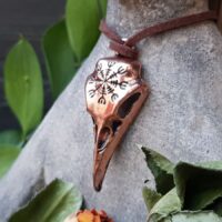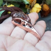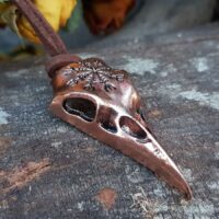 Pingente Skull Corvo Raven Cobre + Cordão de Couro