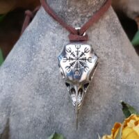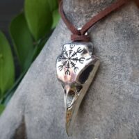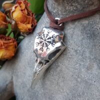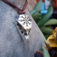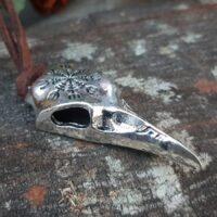 Pingente Skull Corvo Raven Prata + Cordão de Couro