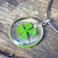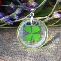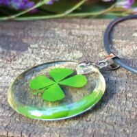 Pingente com cordão trevo de quatro folhas – Trevo da sorte – Pingente Trevo de Quatro Folhas Natural