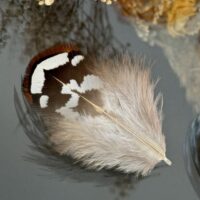 Em Além de Salém, cada pena é valorizada por sua singularidade, destacando a espécie e o propósito a que se destina, para além da beleza, ressaltando sua autenticidade e essência. As penas, diretas expressões da natureza, trazem características únicas de cor e desenho, reafirmando o valor e a verdade de cada item. Assim, é importante notar que as penas de nosso acervo podem variar em tamanho, padrão e tonalidade, ecoando a diversidade e o encanto natural inerentes a cada uma delas.