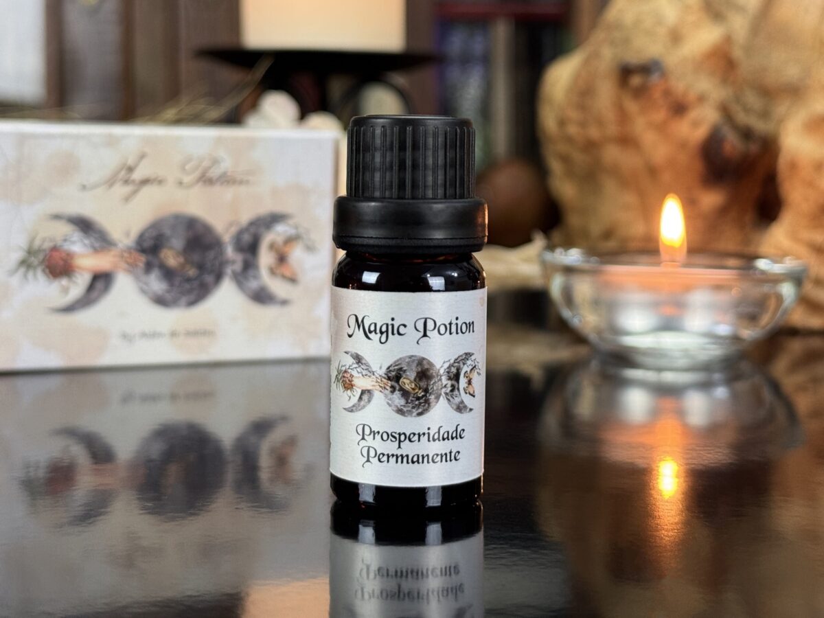 Criada para magnetizar oportunidades financeiras, esta poção é um poderoso catalisador de sorte, sucesso e estabilidade. Sua energia sutil e contínua age desbloqueando estagnações, removendo barreiras energéticas e alinhando sua vibração com o fluxo da prosperidade. Quando utilizada com intenção, fortalece feitiços de riqueza e protege contra perdas e escassez.