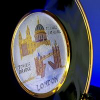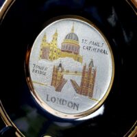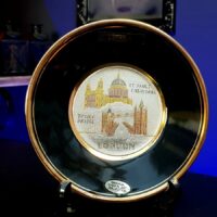 Lindíssimo prato londrino da década de 70 com detalhes belíssimos pintados à ouro 24 k. A peça faz parte da manufatura Dinasty Gallery e tem em sua estampa a Bridge Tower e a St. Paul,s Cathedral.