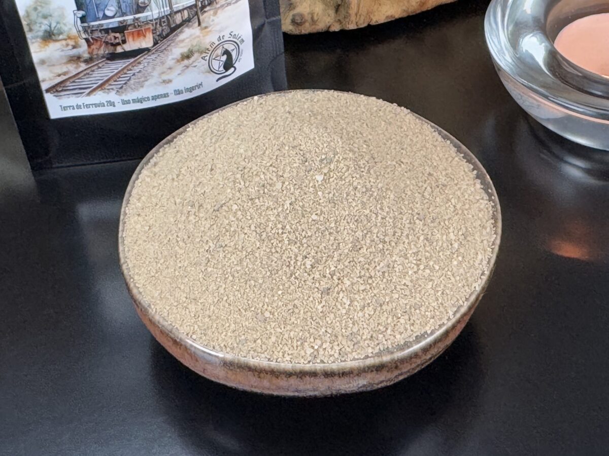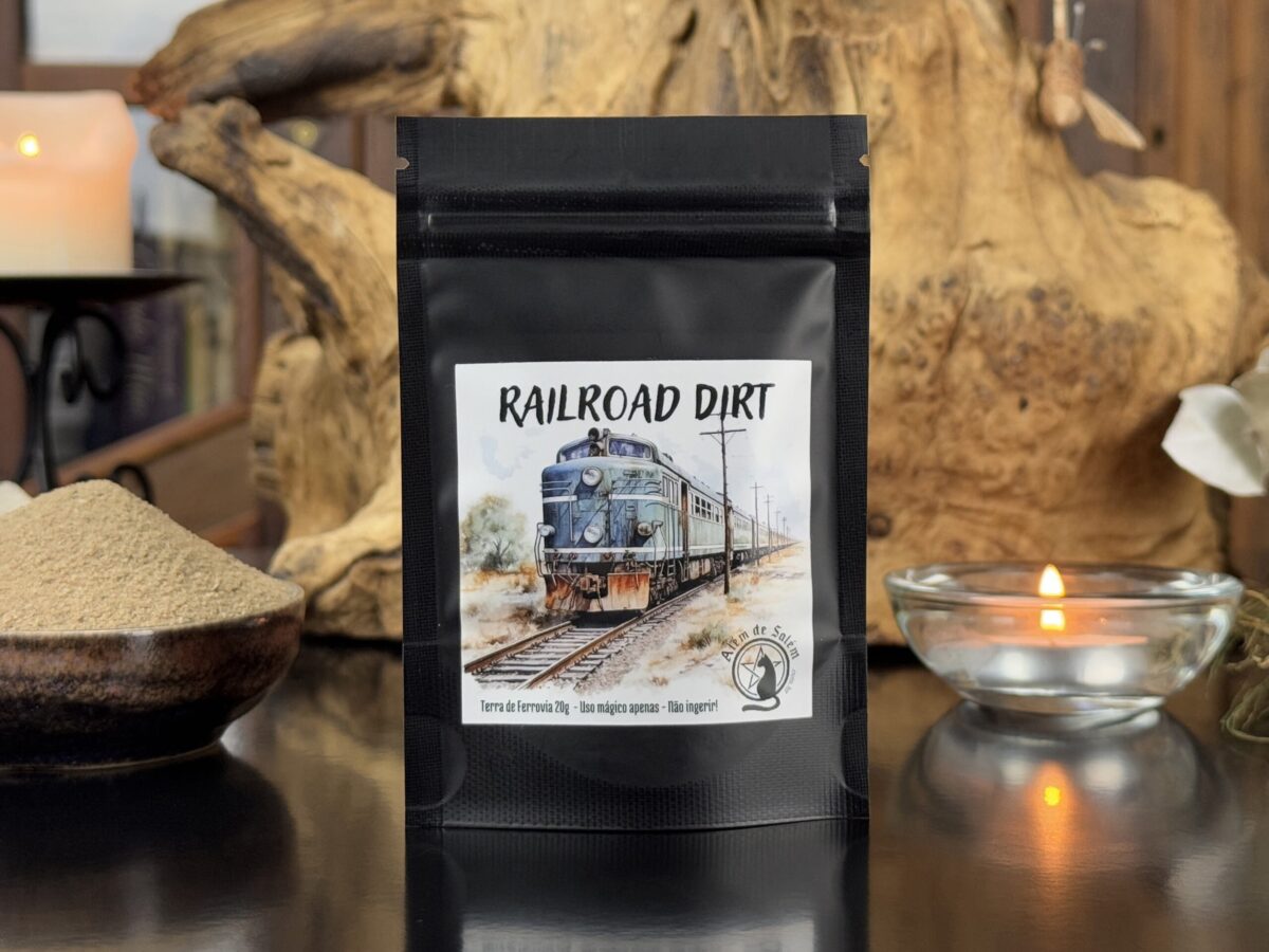 A terra de ferrovia carrega as energias do movimento, viagem e transição. Coletada das trilhas dos trens, ela traz consigo a força simbólica da mudança e do transporte. Ideal para feitiços que visam atrair oportunidades, prosperidade e relações, ou afastar obstáculos e energias negativas, essa terra amplifica a intenção de movimentar algo em sua vida.