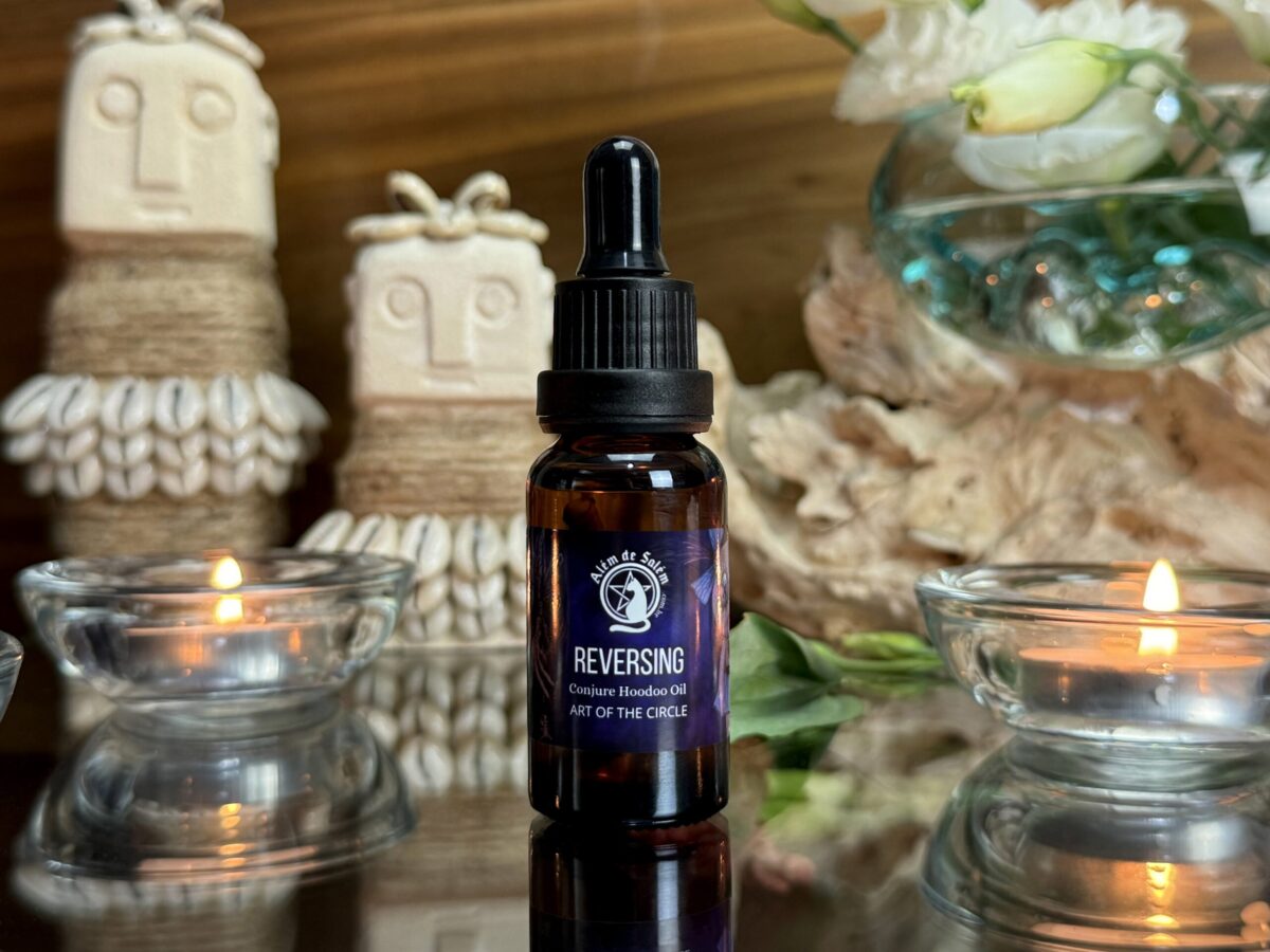 Este é um óleo que possui muita eficácia, especialmente em Magias com espelho, o Reversing Oil amplifica o processo de reflexão das energias negativas, garantindo que elas retornem ao seu ponto de origem sem causar dano a você. Além disso, é ideal para ungir velas em rituais de reversão e pode ser incorporado em qualquer prática mágica que vise a devolução de influências maléficas ao remetente.