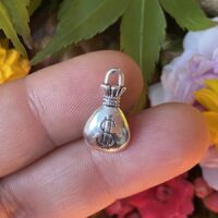 Pendant em liga metálica, representando saco de dinheiro, com $, símbolo universal do dinheiro, para ser usado em amuletos Mojo, Poppets e Magias voltadas para ganhos financeiros de modo geral.