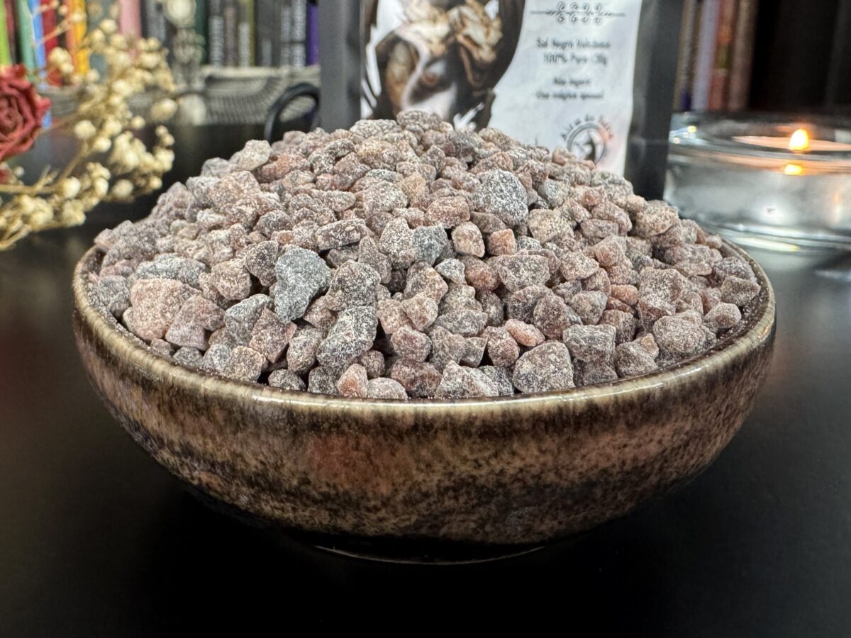 Dentro das práticas esotéricas, o Kala Namak é considerado um catalisador de forças ocultas, pois contém em si o fogo primordial do solo vulcânico e a pureza mineral das montanhas sagradas. Por essa razão, ele é utilizado tanto sozinho quanto combinado com ervas, cinzas e outros ingredientes mágicos para fortalecer seu propósito ritualístico.