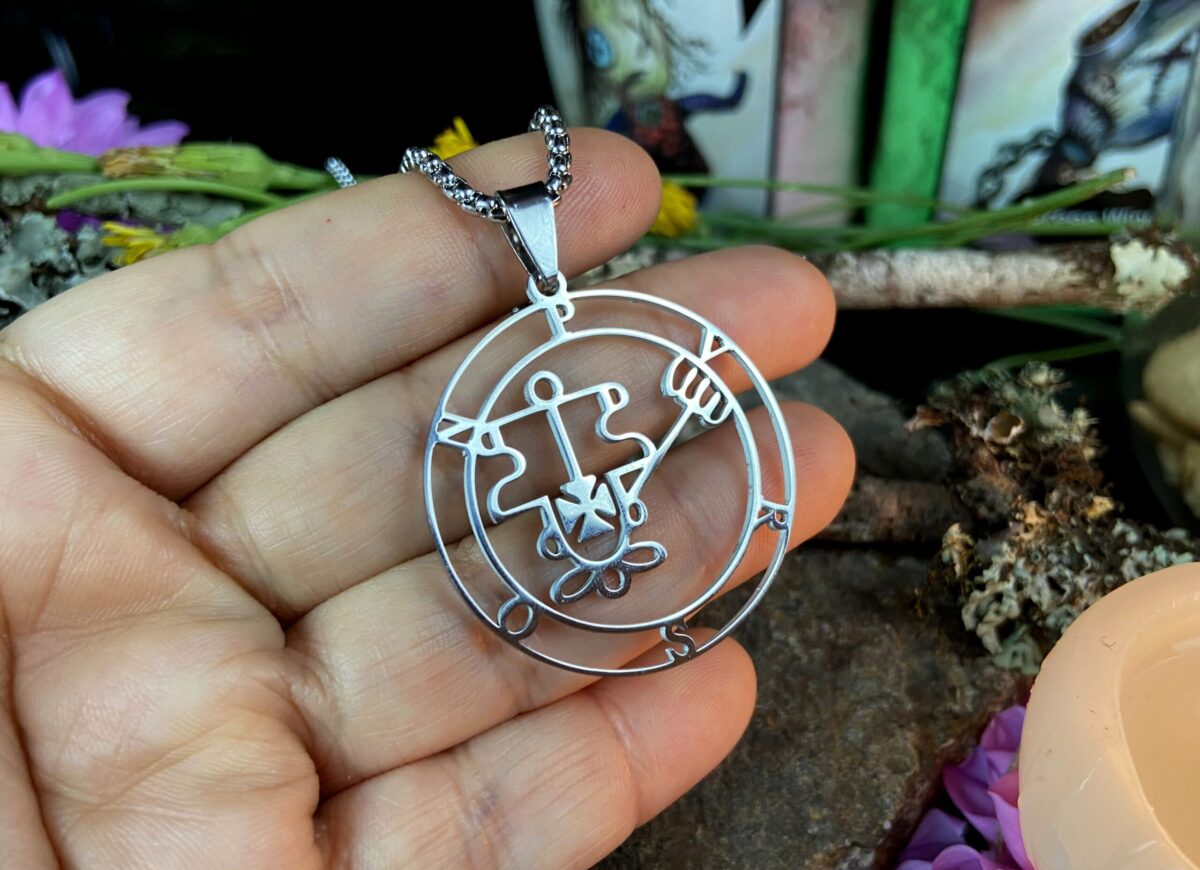 Este pingente em aço inoxidável traz o sigilo de Purson, um poderoso rei da Goétia que comanda 22 legiões de espíritos. Reconhecido por seus vastos poderes, Purson é invocado por aqueles que buscam desvendar segredos ocultos, explorar conhecimentos profundos e obter respostas sobre o passado, o presente e o futuro.