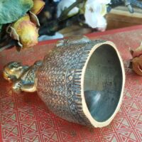 Precisíssimo sino em bronze maciço, ricamente cinzelado com detalhes perfeitos para um instrumento ritualístico.