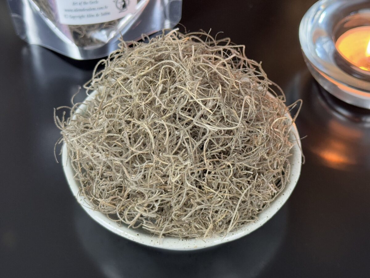 O Spanish Moss (Tillandsia usneoides) é um poderoso ingrediente mágico, amplamente utilizado no Voodoo e Hoodoo, para trabalhos que envolvem sofrimento, vingança e justiça retributiva. Este material natural carrega uma energia sombria e focada, sendo ideal para feitiços direcionados ao desequilíbrio de inimigos e à busca de reparação em situações de injustiça.