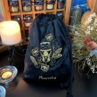 - 1 Bag bordada com materiais para o ritual de ativação e comando (velas de sebo de carneiro, resinas raras, ervas entre outros).