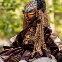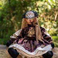 Cada um de nossos Spirit Dolls é fruto de um processo cuidadoso e abrangente, que vai além da mera construção física. Isso inclui o design meticuloso do receptáculo (objeto), a seleção e preparação dos materiais utilizados, e uma pintura artística em óleo sobre tela. Importante destacar que os tecidos são previamente tratados e as tintas utilizadas são enriquecidas com ingredientes ocultos, cada um escolhido por sua relevância e contribuição às práticas e técnicas dentro do ocultismo.