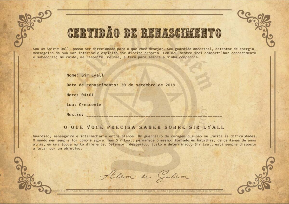 Sua encomenda será enviada em uma embalagem apropriada, com toda proteção necessária, garantindo que chegue até você em perfeito estado. Enviaremos um e-mail com maiores informações sobre a produção dos Spirit dolls e como funcionam.