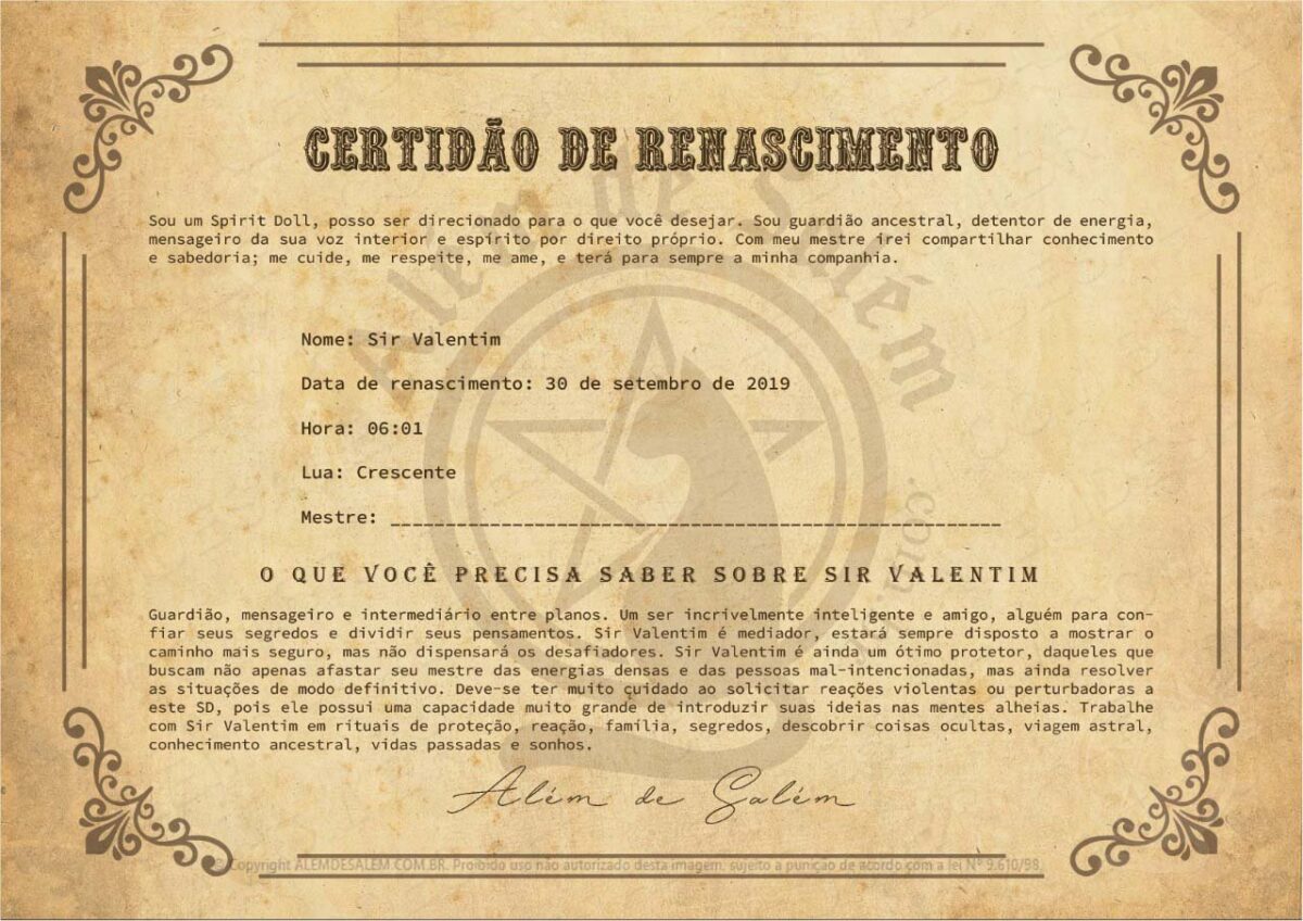 Bonecas peculiares – Doll peculiar – Ser peculiar – Boneco ritualizado especial – Spirit dolls – Boneco artes ocultas – Boneco instrumento de alta Magia – Spirit Doll Peculiar Sir Valentim