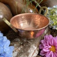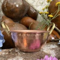 Tacho de cobre sem verniz – Tacho 100% cobre puro para cozinha – Tacho artesanal de cobre – Cozinha da Bruxa -Tacho de Cobre 0,5L com Alças em Bronze