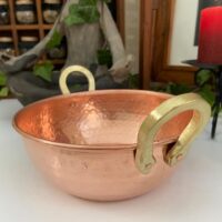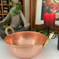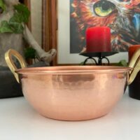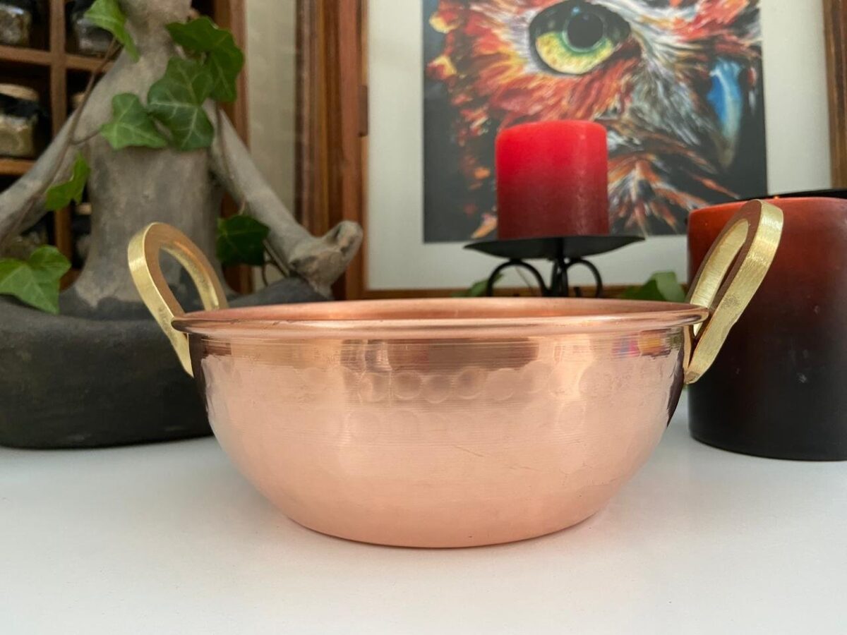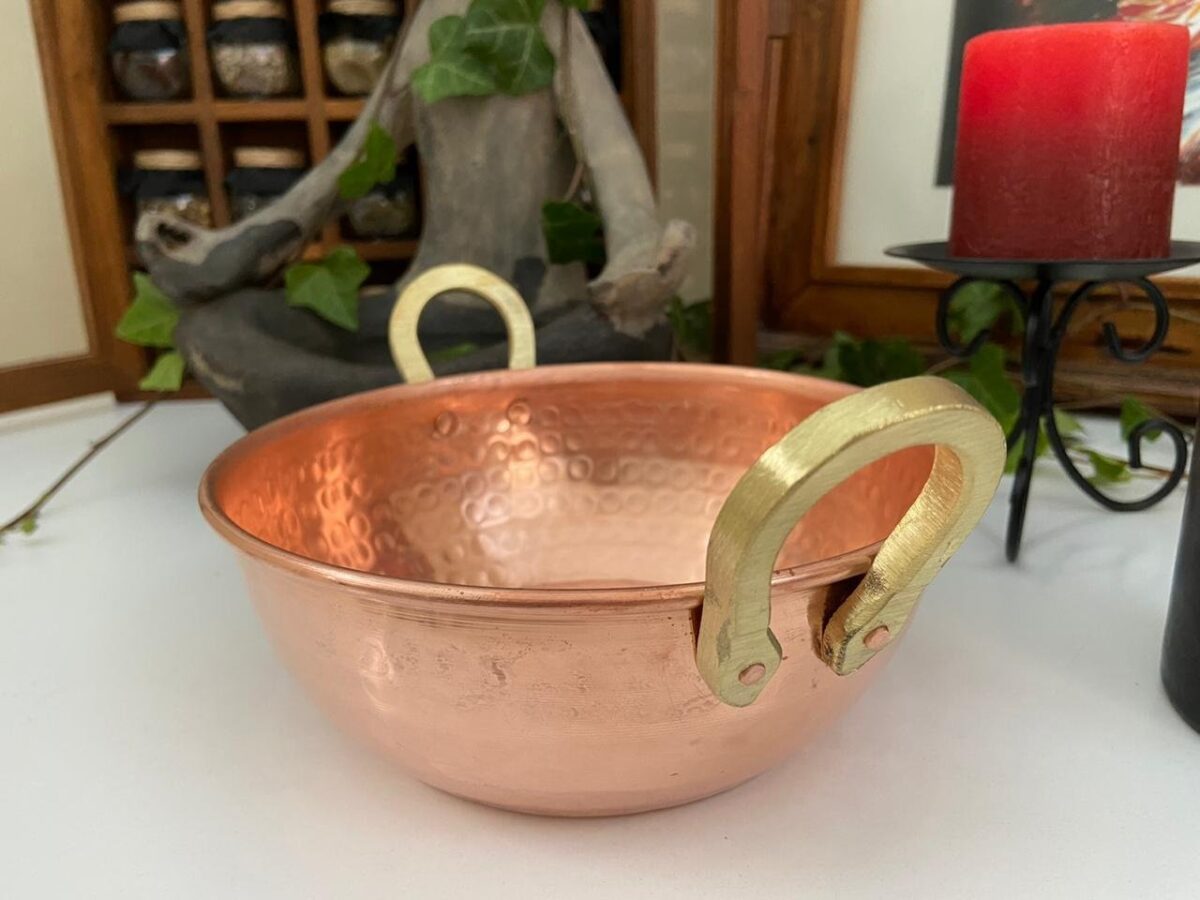 Tacho de cobre sem verniz – Tacho 100% cobre puro para cozinha – Tacho artesanal de cobre – Cozinha da Bruxa -Tacho de Cobre 1 litro com Alças em Bronze