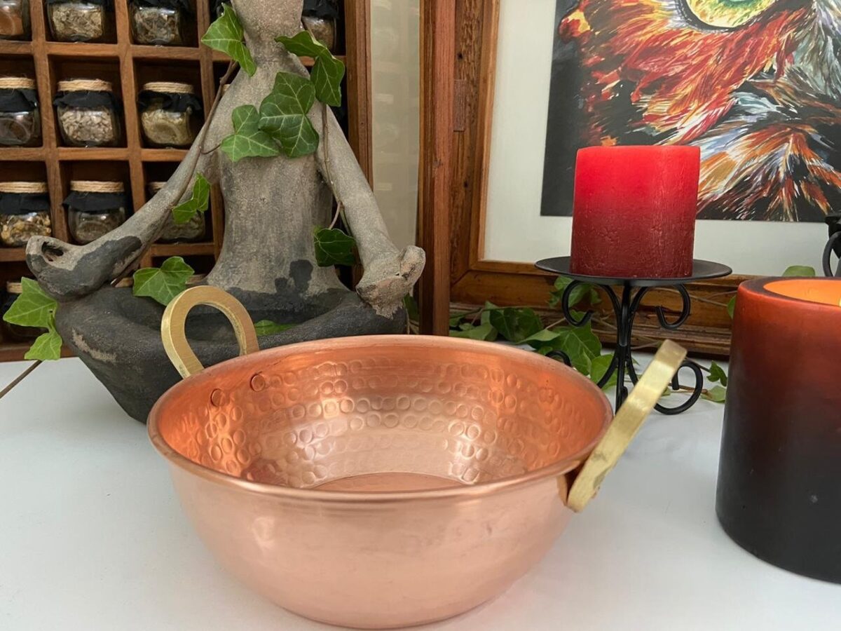 Lindíssima peça em 100% cobre com alças de verniz feito artesanalmente para que você possa fazer suas poções, magias, entre outros.