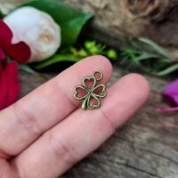 Mini trevo de quatro folhas. em metal cor bronze para adornar amuletos e trabalhos com Dolls no Hoodoo, entre outros.