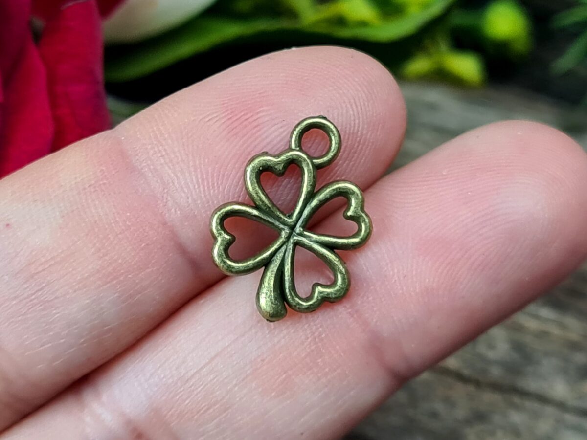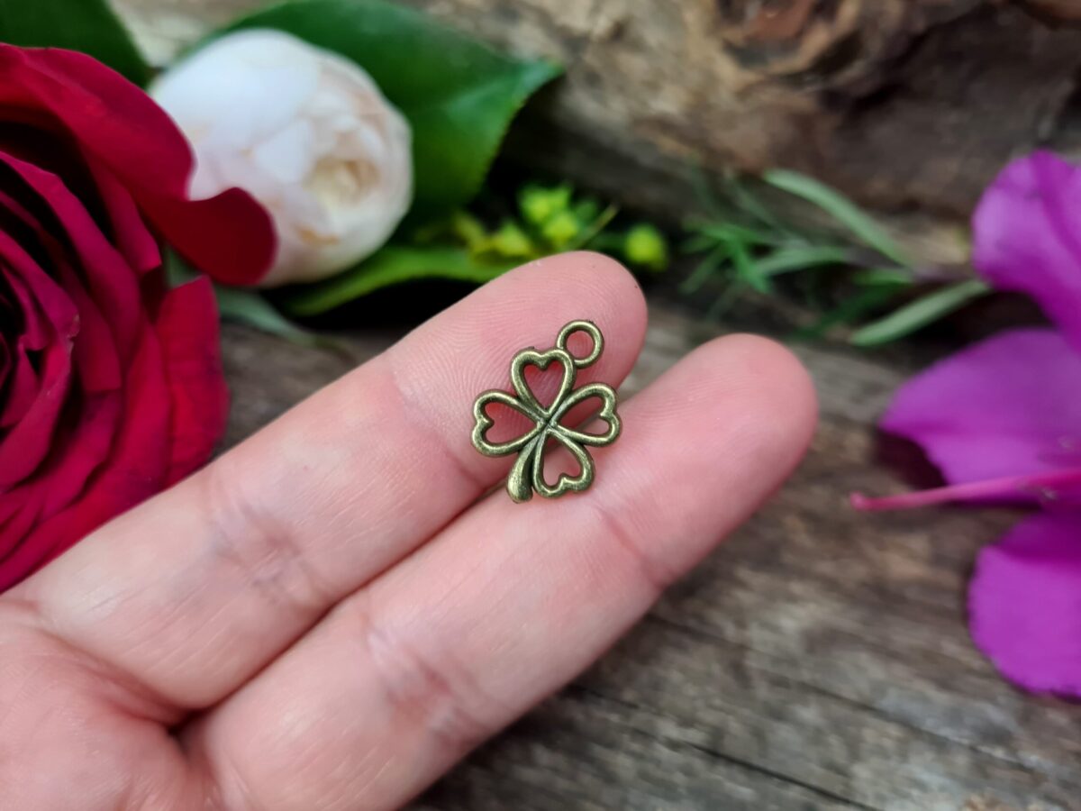 Mini trevo de quatro folhas. em metal cor bronze para adornar amuletos e trabalhos com Dolls no Hoodoo, entre outros.