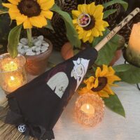 Vassoura de Bruxa artesanal decorada – Witch’s broom – Vassoura bruxaria – Instrumento mágico vassoura – Vassouras – Vassoura Morrigan Raven Bruxa