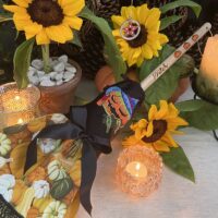 Vassoura de Bruxa artesanal decorada – Witch’s broom – Vassoura bruxaria – Instrumento mágico vassoura – Vassouras – Vassoura Pumpkin Night Bordada