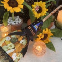 A Vassoura Pumpkin Witch Bordada ainda possui pirografia manual no seu cabo, que faz com que esta peça seja ainda mais estilosa e personalizada.