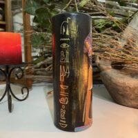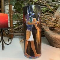 Vela Anúbis pintada à mão Alluh Amon – Vela artística – Hand painted candle – Vela de deuses – Velas obras de arte