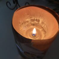Quando as velas vão queimando, forma-se uma espécie de ‘copo’ (formato), fazendo com que se tornem lidíssimas lanternas de fogo (ver exemplo na última imagem da galeria).