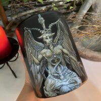 Vela Baphomet pintada à mão Alluh Amon – Vela artística – Hand painted candle – Vela de deuses – Velas obras de arte