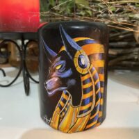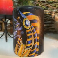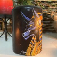 Vela deus Anúbis pintada à mão Alluh Amon – Vela artística – Hand painted candle – Vela de deuses – Velas obras de arte