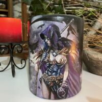- 01 Vela deusa Morrigan Battle pintada à mão Alluh Amon
